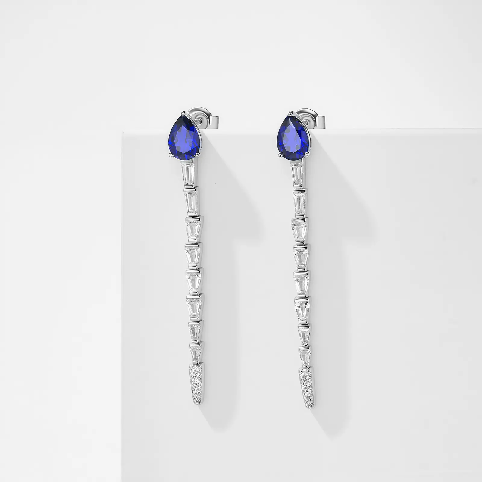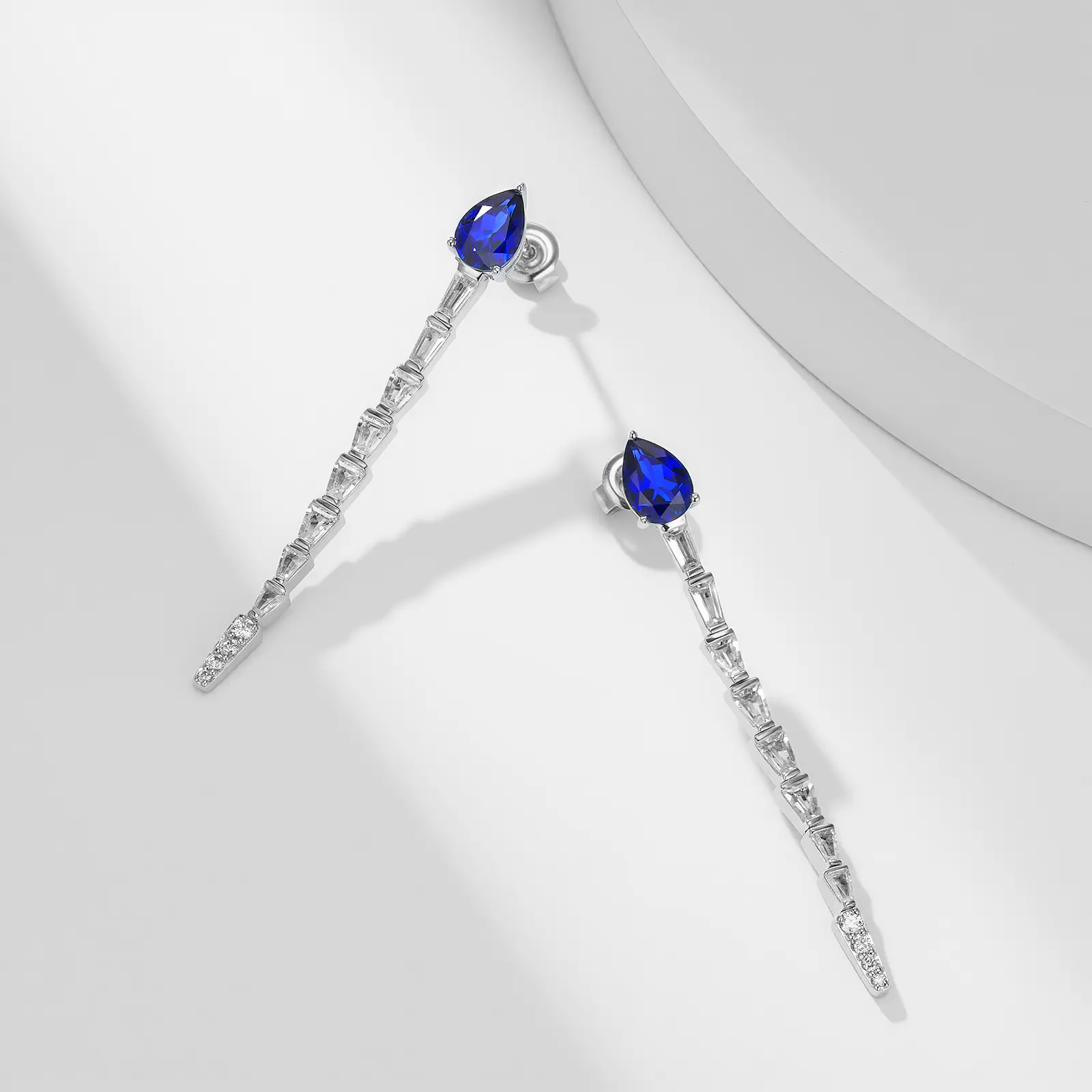 925 Sterling Silver Pear Shape Blue Sapphire Lab Grown Gemstone Drop Dangle Long Earrings Female Brand Hypoallergenic Latest Jewelry