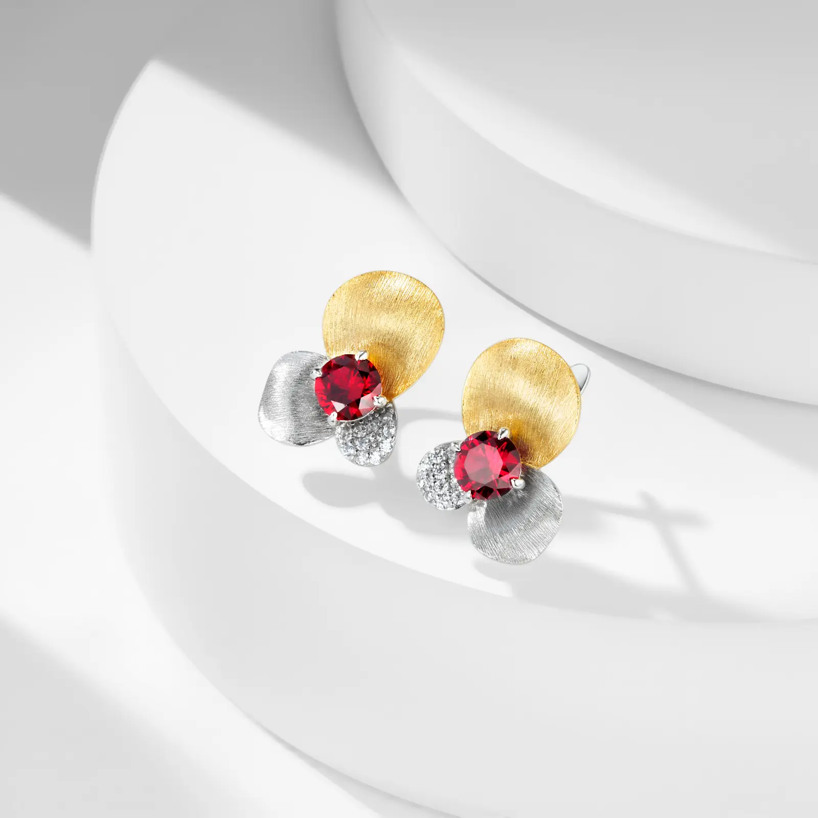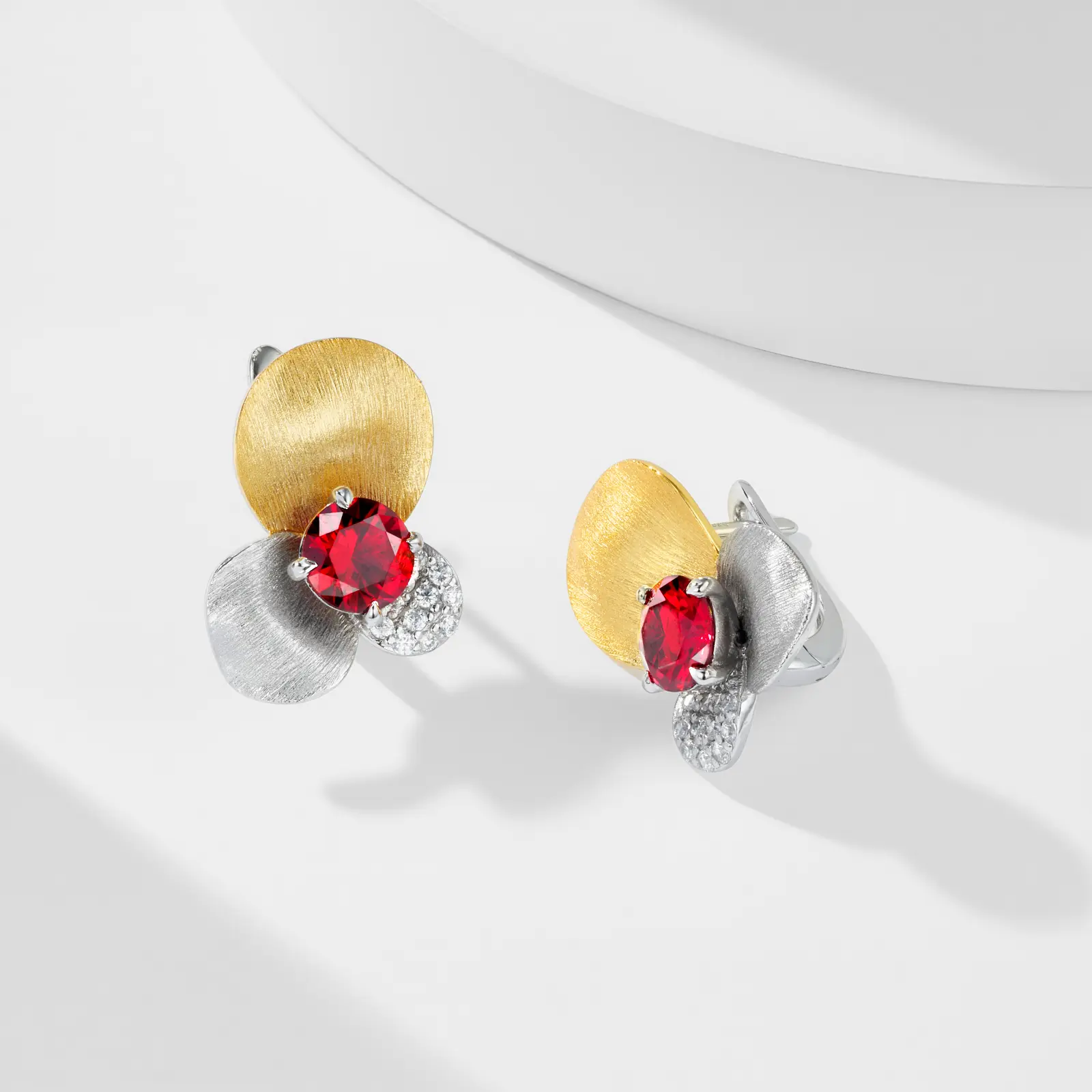Flower Shape Gold Silver Lab Grown Ruby Luster Texture Stud Earrings for Women Casual Office Dainty Earrings Jewelry Factory Manufacture Price