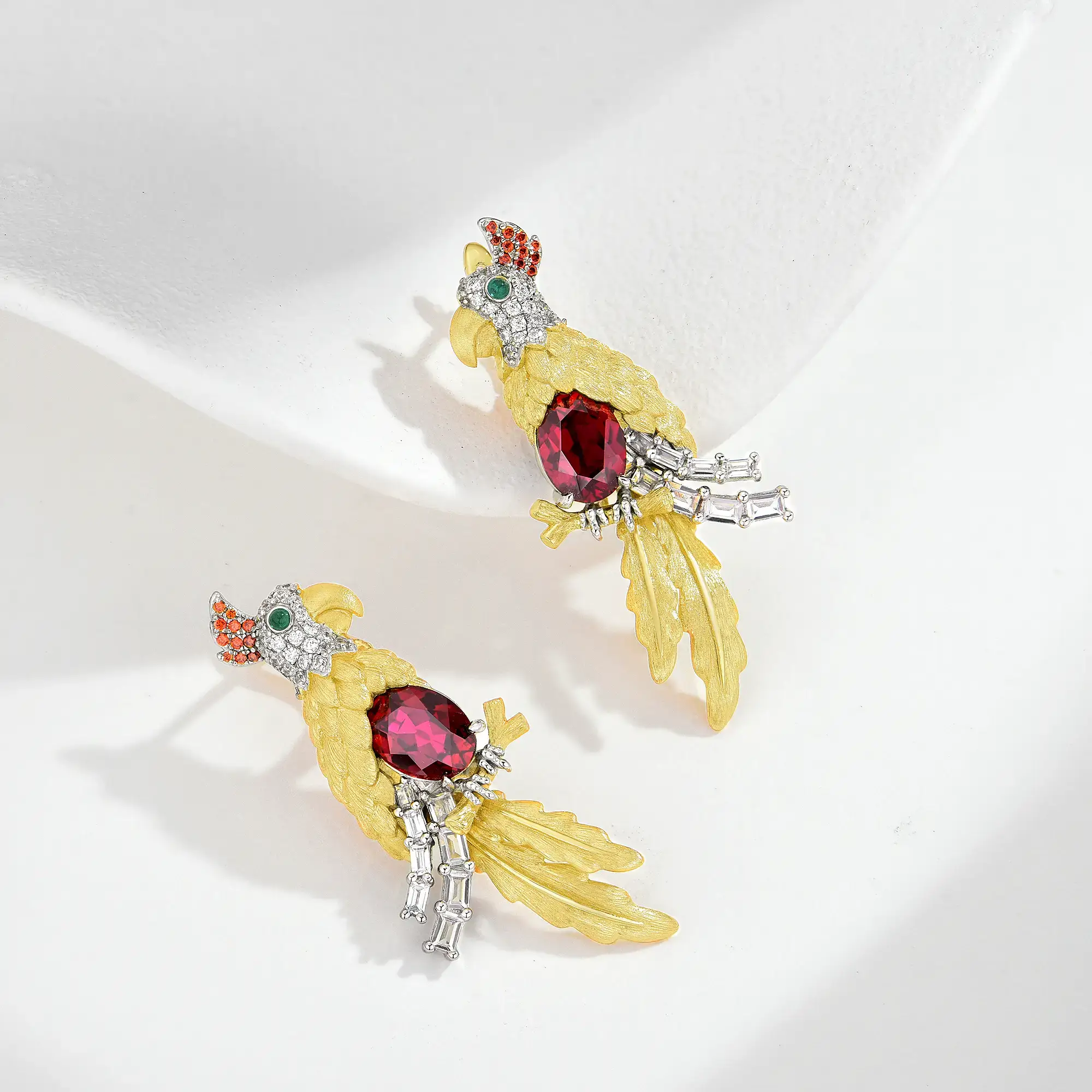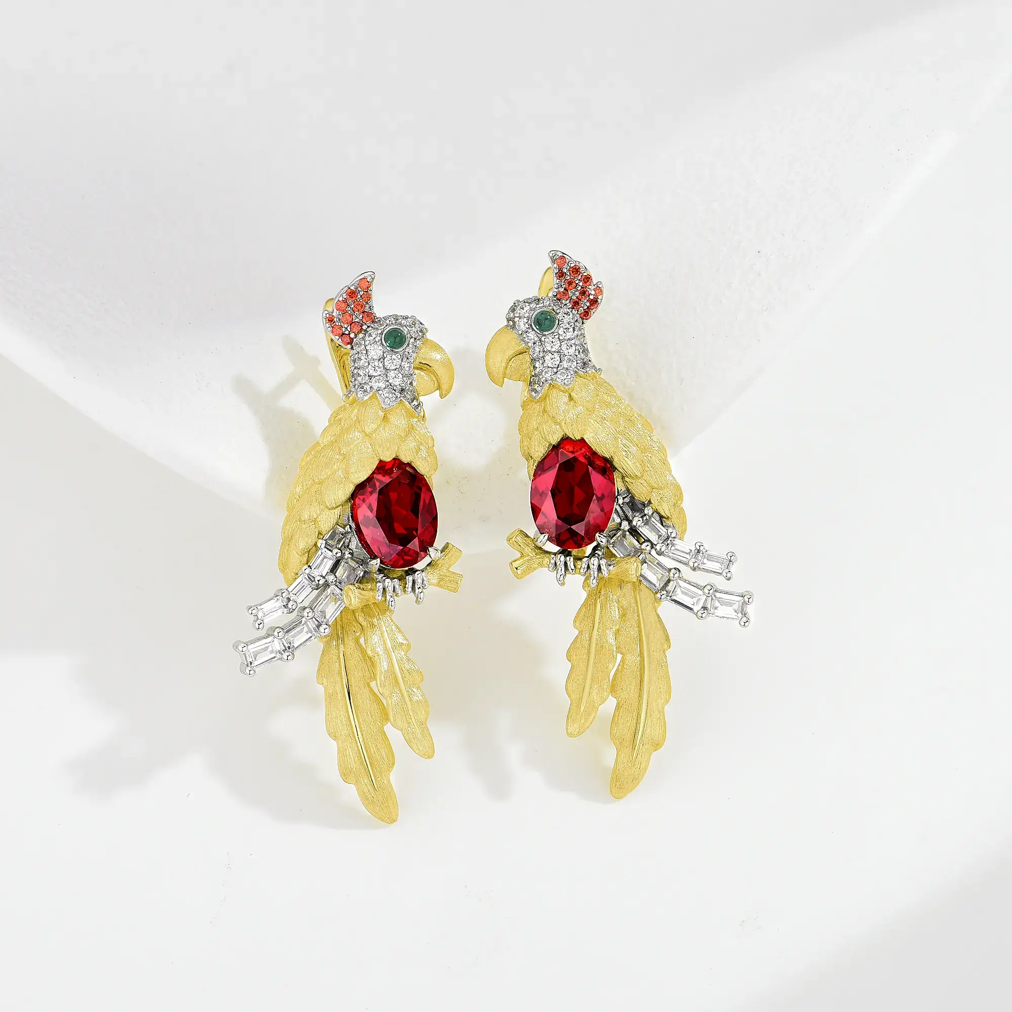 Golden Cockatoo Animal Series Stud Earrings Lab Grown Ruby Diamonds Handcrafted Bird Inspired Luxury Jewelry for Women Elegant Precious Earrings