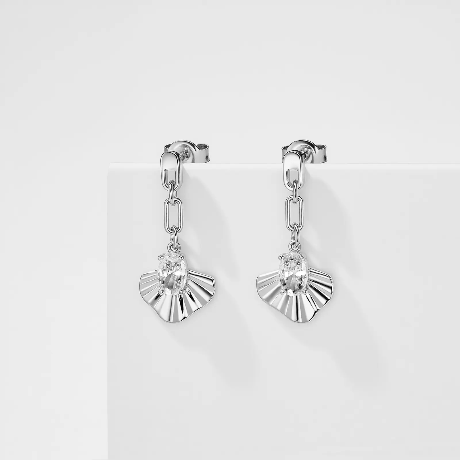 Shell Fan-shaped Chain Link Solid Silver Fine Drop Dangle Earrings for Women Girl Date Daily Hypoallergenic Vintage Dainty Jewelry