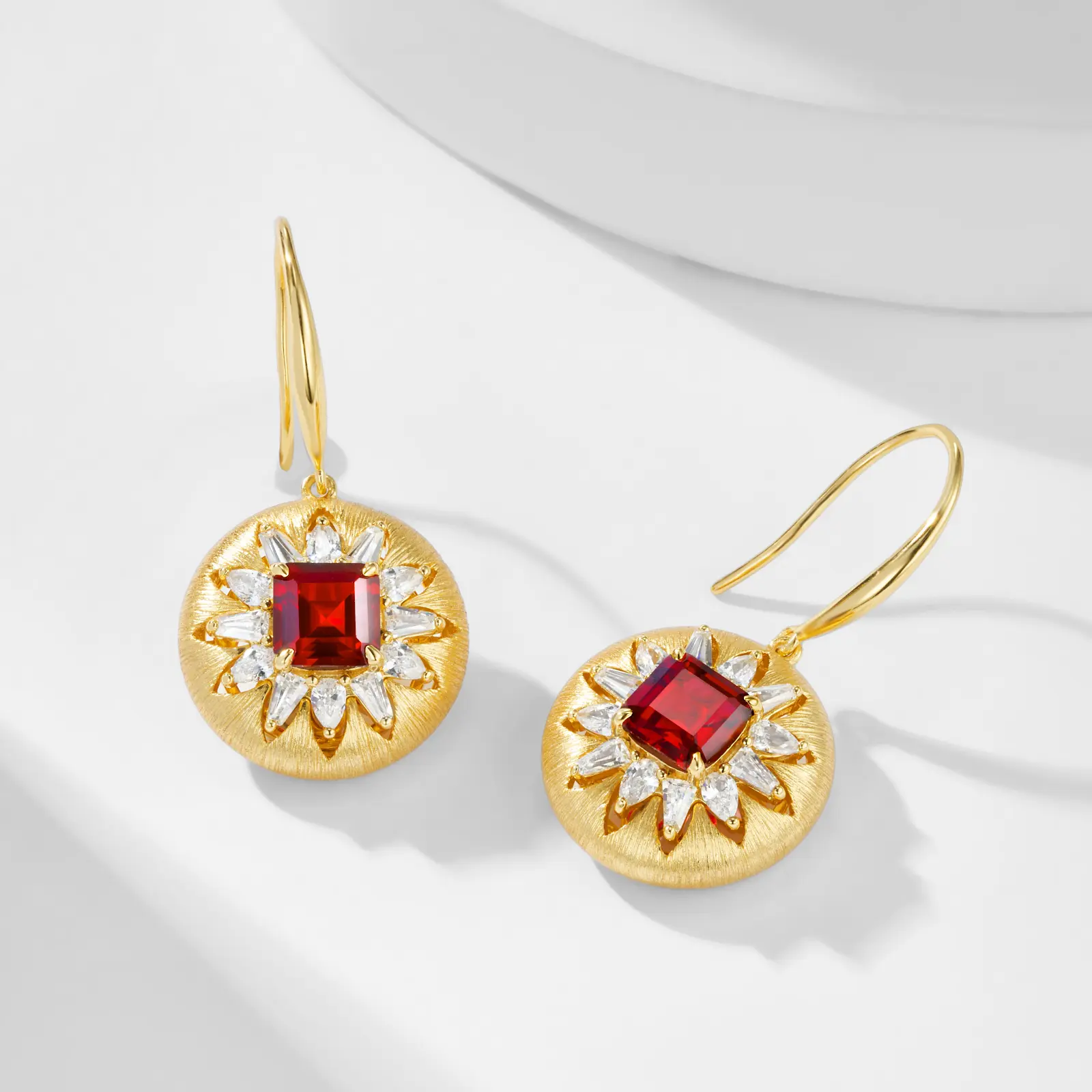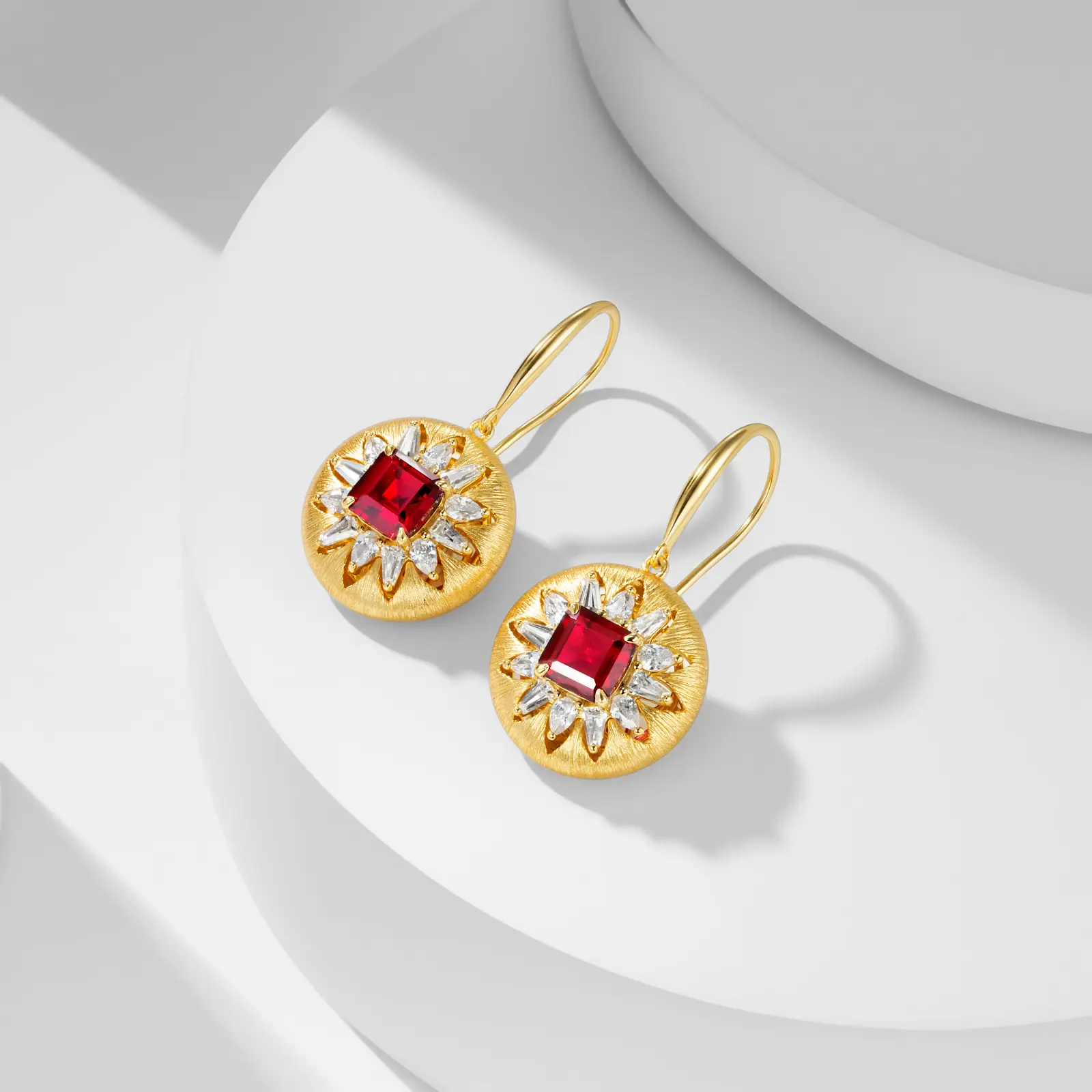 Top Quality Genuine Princess Red Ruby Lab Grown Gemstone Handmade Unique Wire Drawing 925 Sterling Silver Femlale Elegant Dangle Earrings