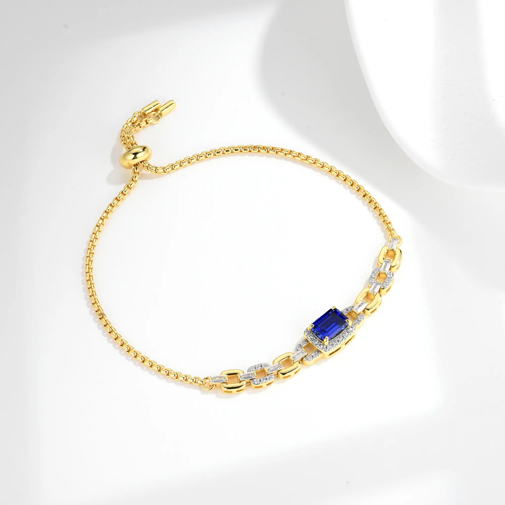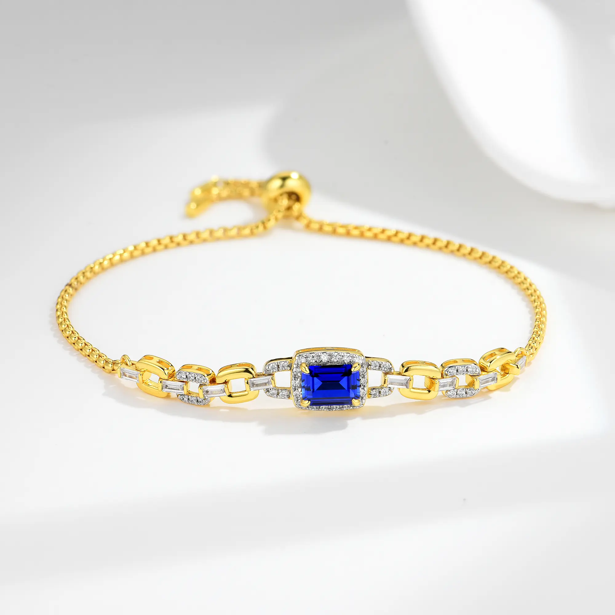 Home / Products / Bracelets / Lab Grown Sapphire Bracelet / Original S925 Silver Lab Grown Emerald Cut Blue Sapphire Gemstone Golden Adjust Link Chain Bracelet for Women Engagement Casual Popular Jewelry Bangle