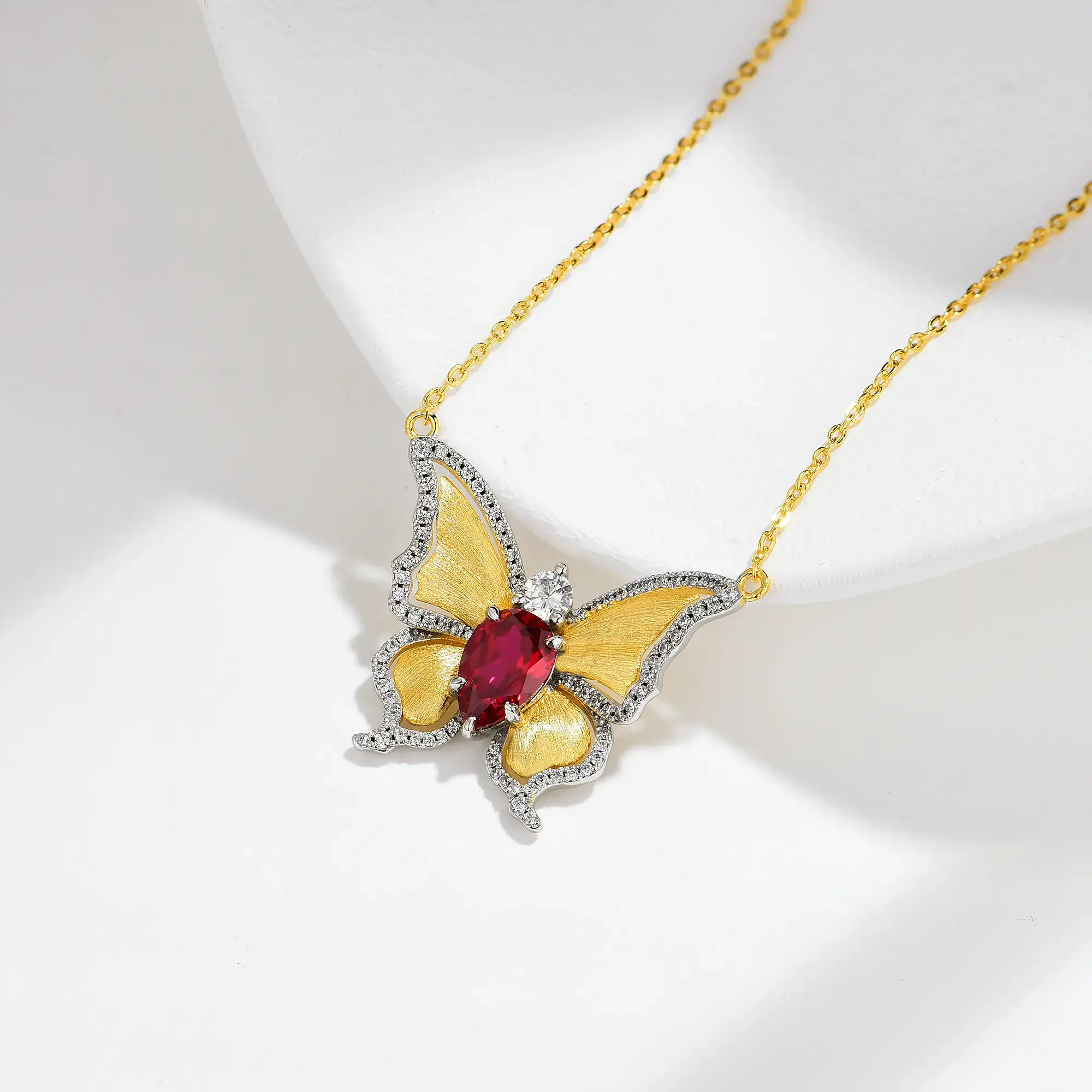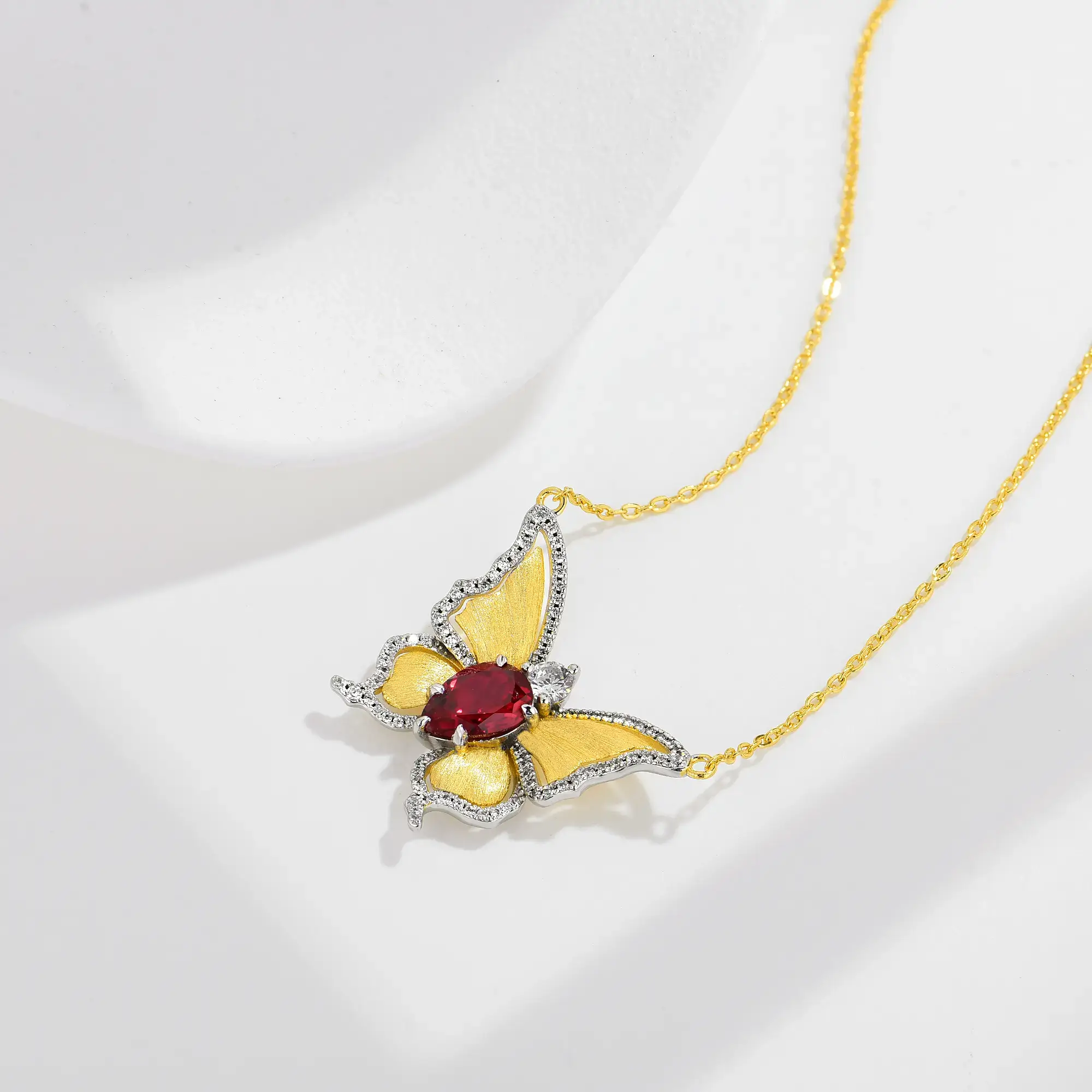Butterfly Necklace Jewelry Lab Grown Ruby Red Birthstone 925 Sterling Silver Pave Diamond Pendant Necklace Customizable Women’s Valentine’s Day Birthday Gift