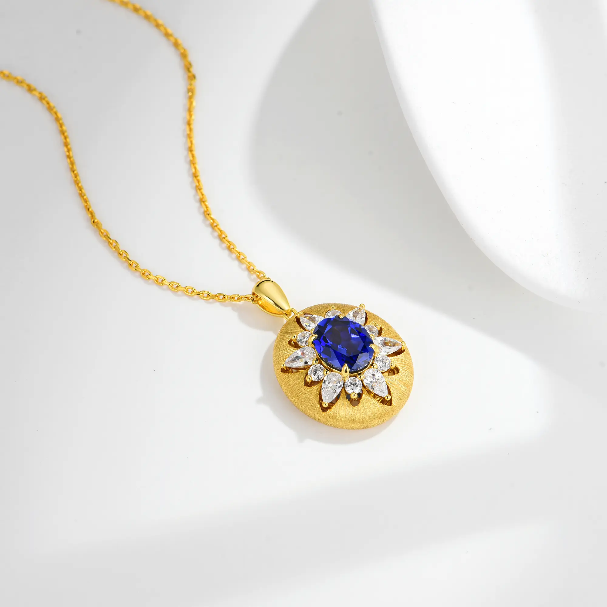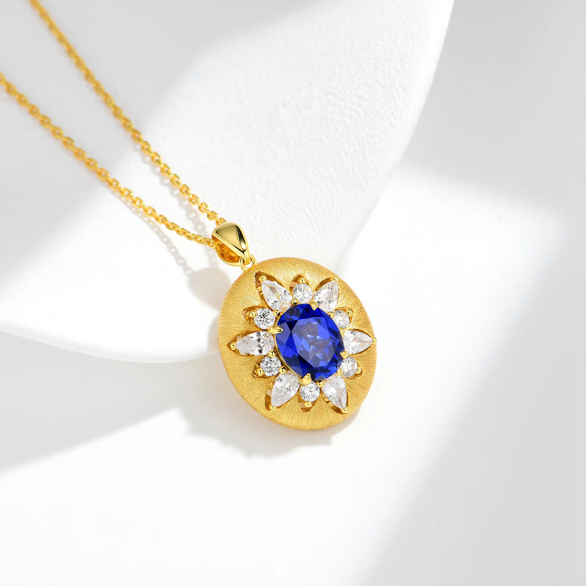 Home / Products / Pendant Necklace / Classic Elegant Oval Gold Pendant Jewelry Natural Royal Gemstone Lab Grown Sapphire Moissanite Gold Pendant Necklace Silver Jewelry for Women Lady Ceremony Temperament Jewelry
