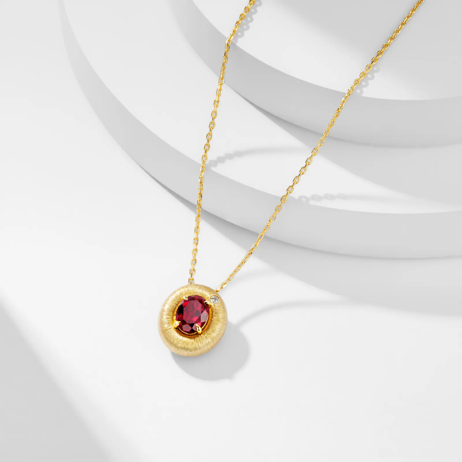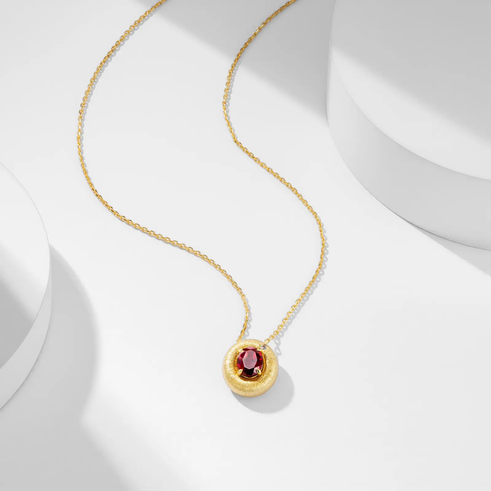 Classic New S925 Silver Italian Craft Courtly Style 7*9mm Lab Grown Simulated Pigeon Blood Ruby Gemstone Pendant Necklace for Lady Festival Real Golden Top Quality Jewelry