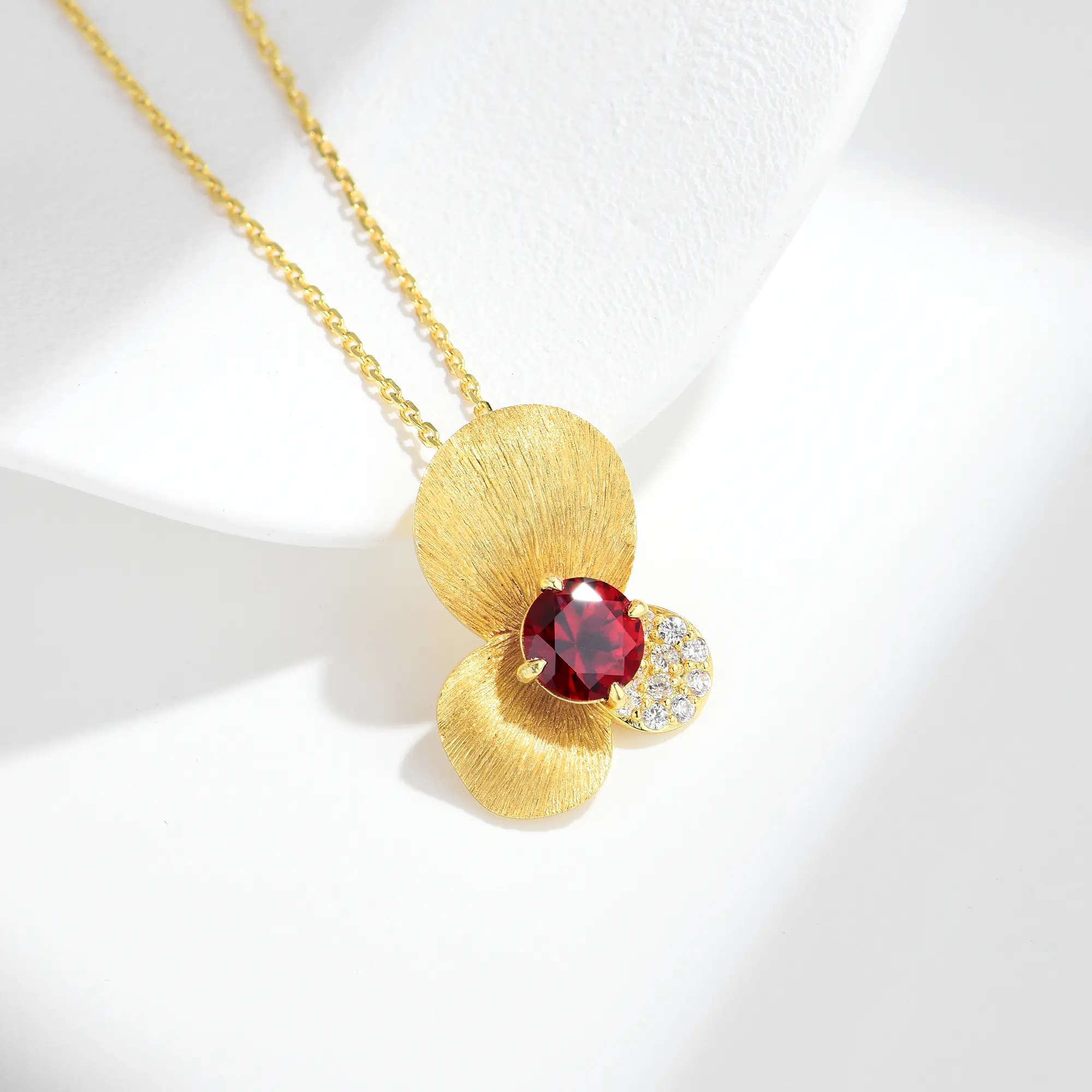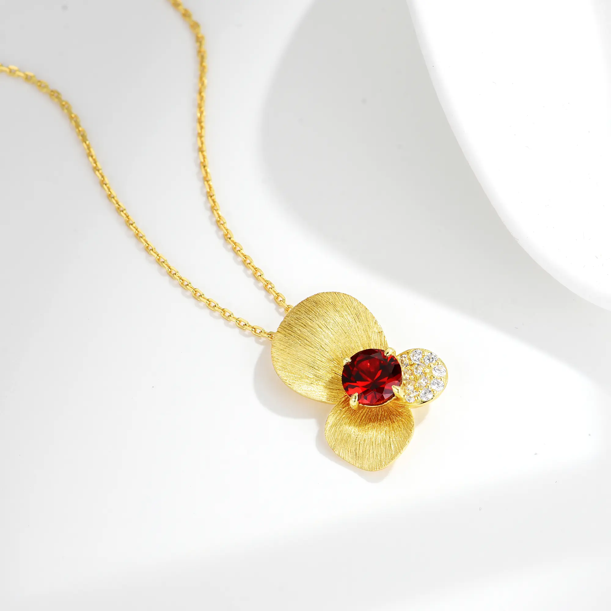 Natural Lab Grown Round Ruby Birthstone Cystal Dainty Flower Petal Pendant Vermeil Gold Crafted 925 Sterling Silver Cross Necklaces for Women Fine Jewelry Free Shipping