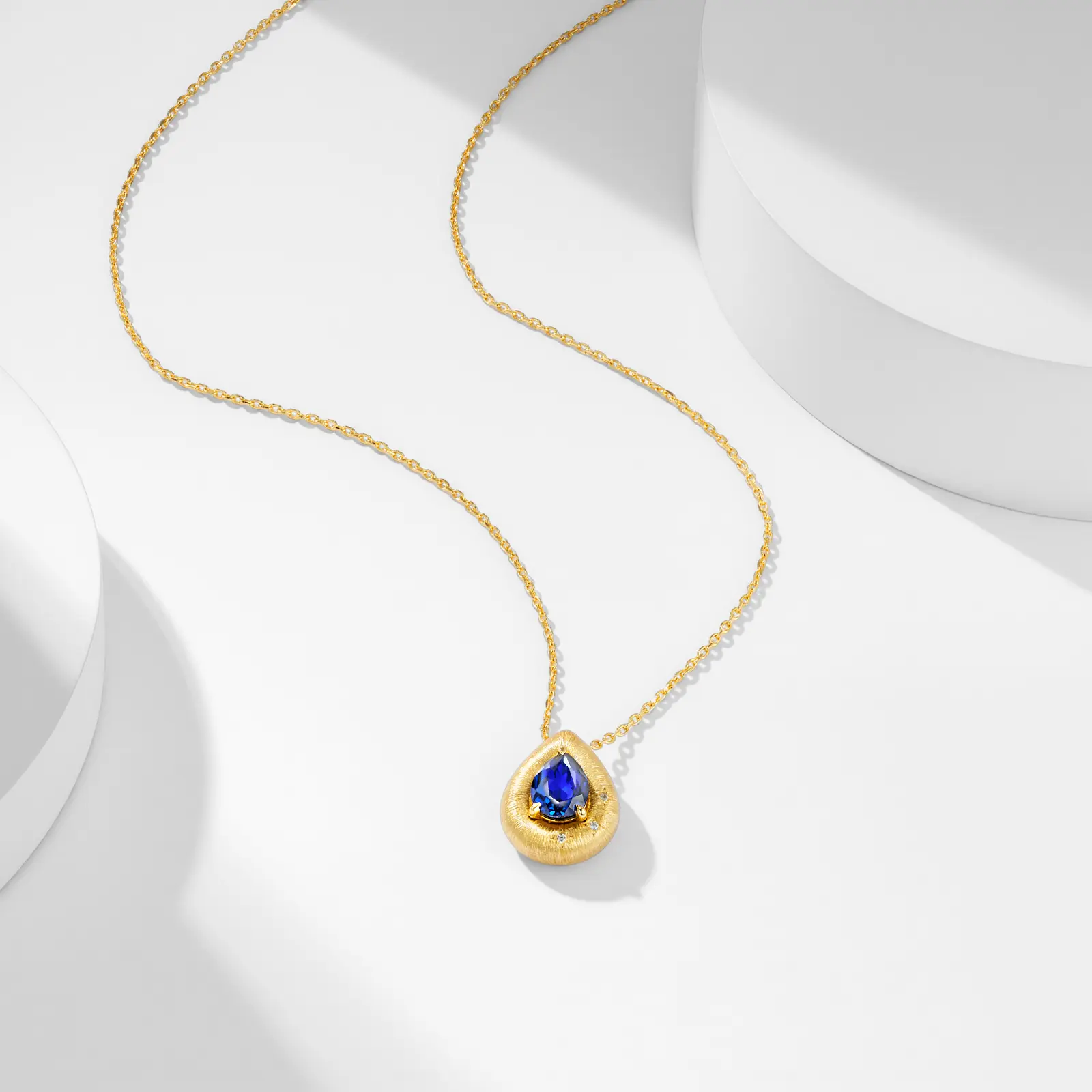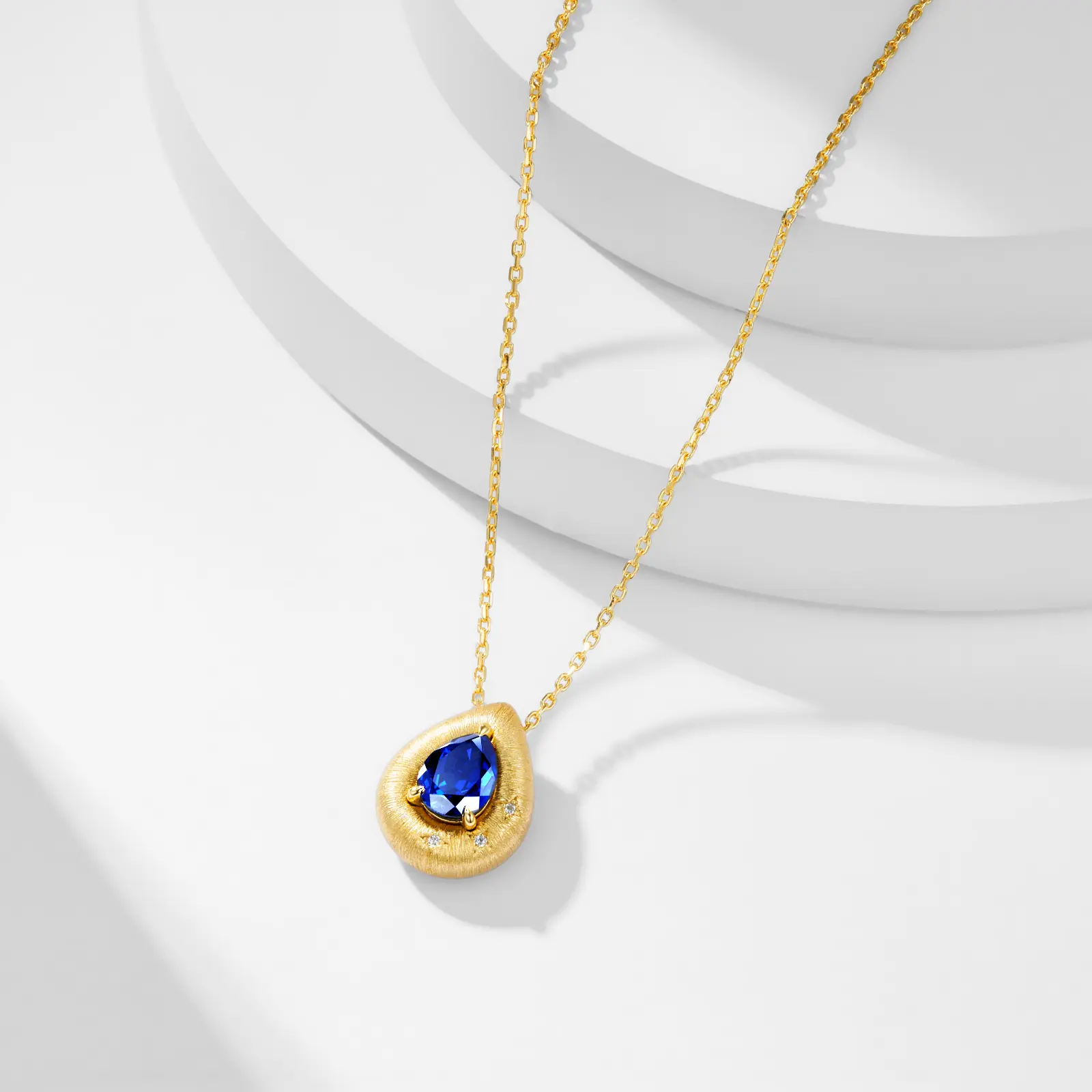 Natural Waterdrop Royal Blue Sapphire Gem Pear Shape Pendant Necklaces 925 Sterling Silver Female Customized Golden Line Simple Fine Jewelry Valentine’s Mother’s Day Gifts