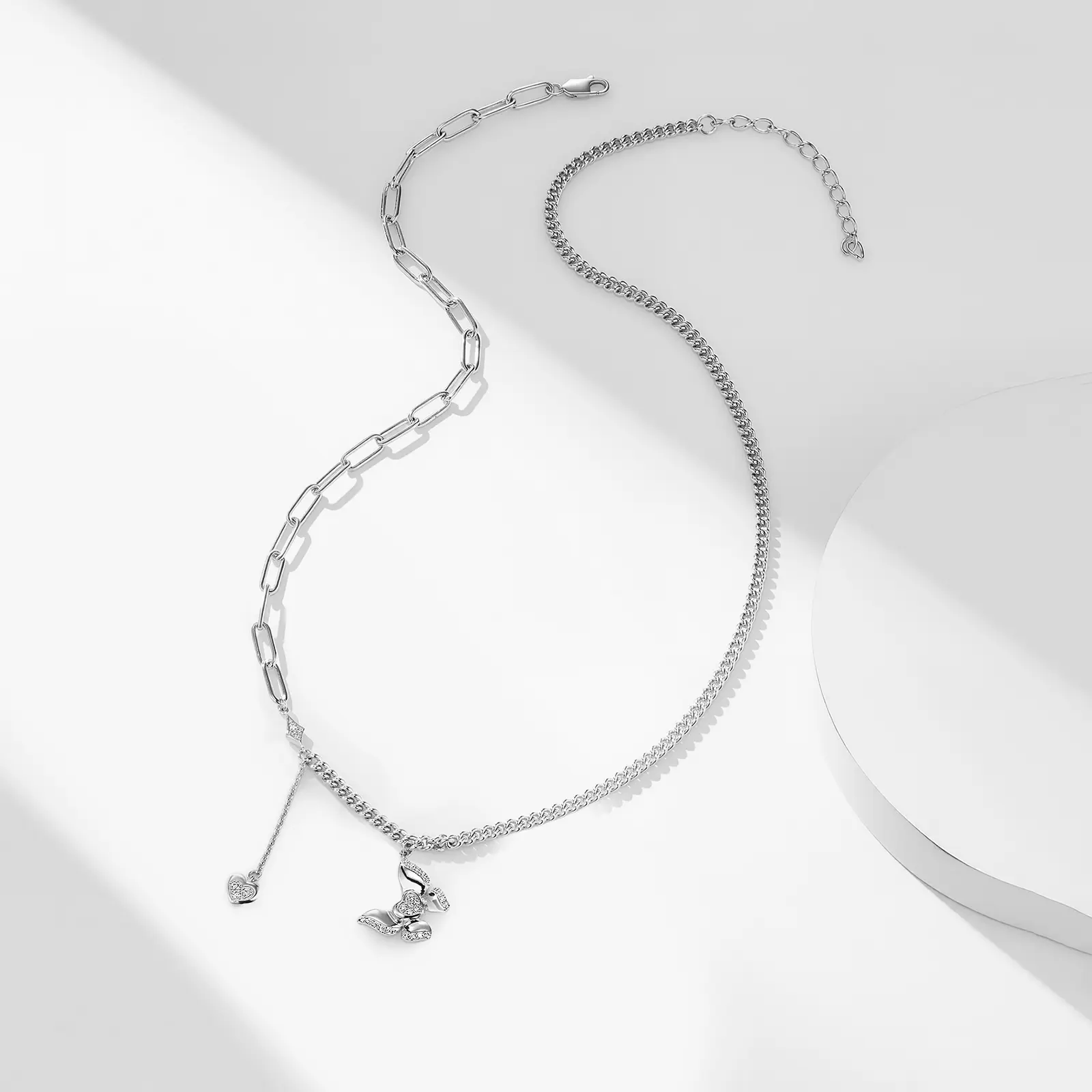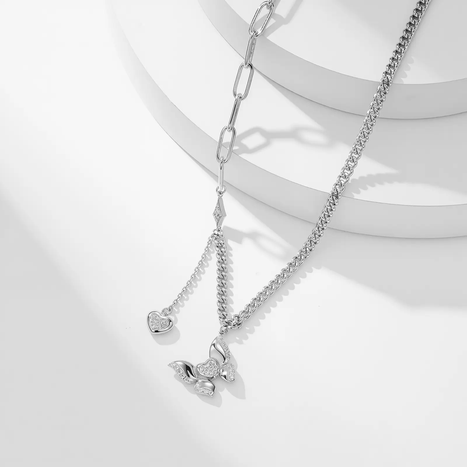 New Butterfly Heart S925 Silver Pendant Necklace Light Luxury Romantic Jewelry for Women Engagement High-end Sense Necklace
