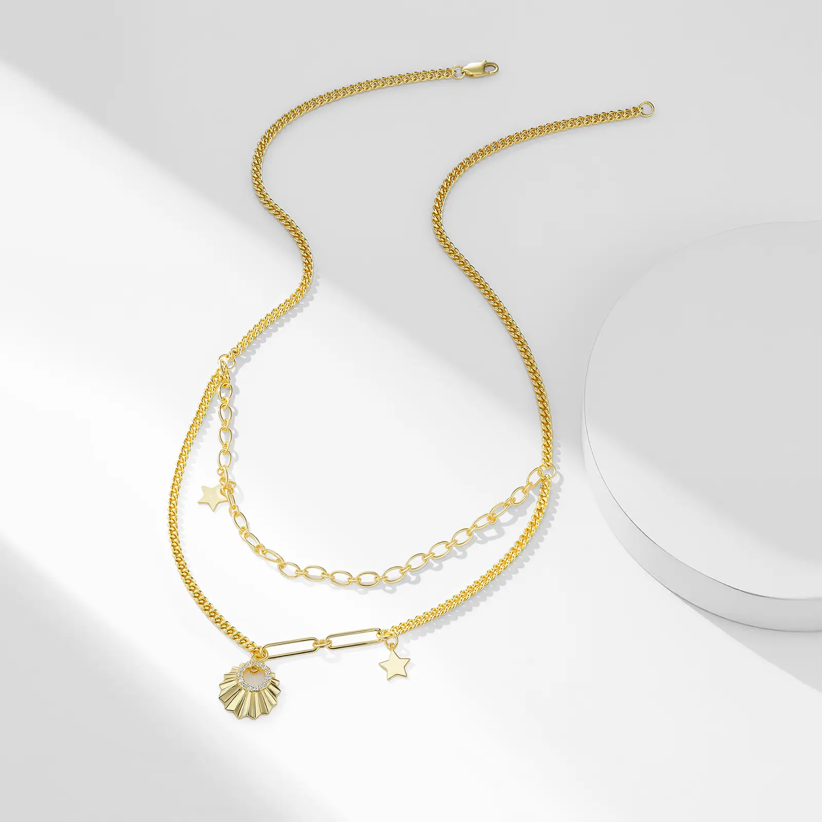 Top Quality Jewelry Golden Double Layered Chian 18k Gold 925 Sterling Silver Star Pendant Women Unise Multilayer Twist Rope Necklace Gifts