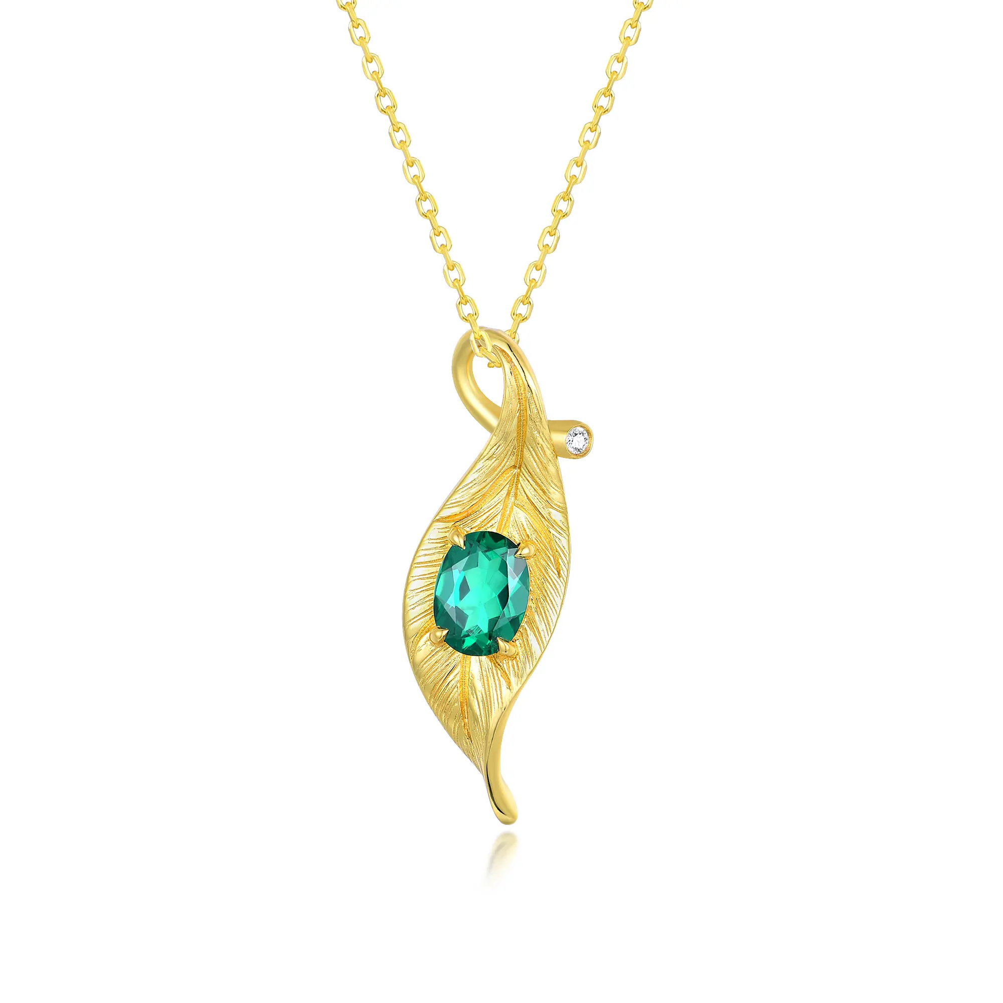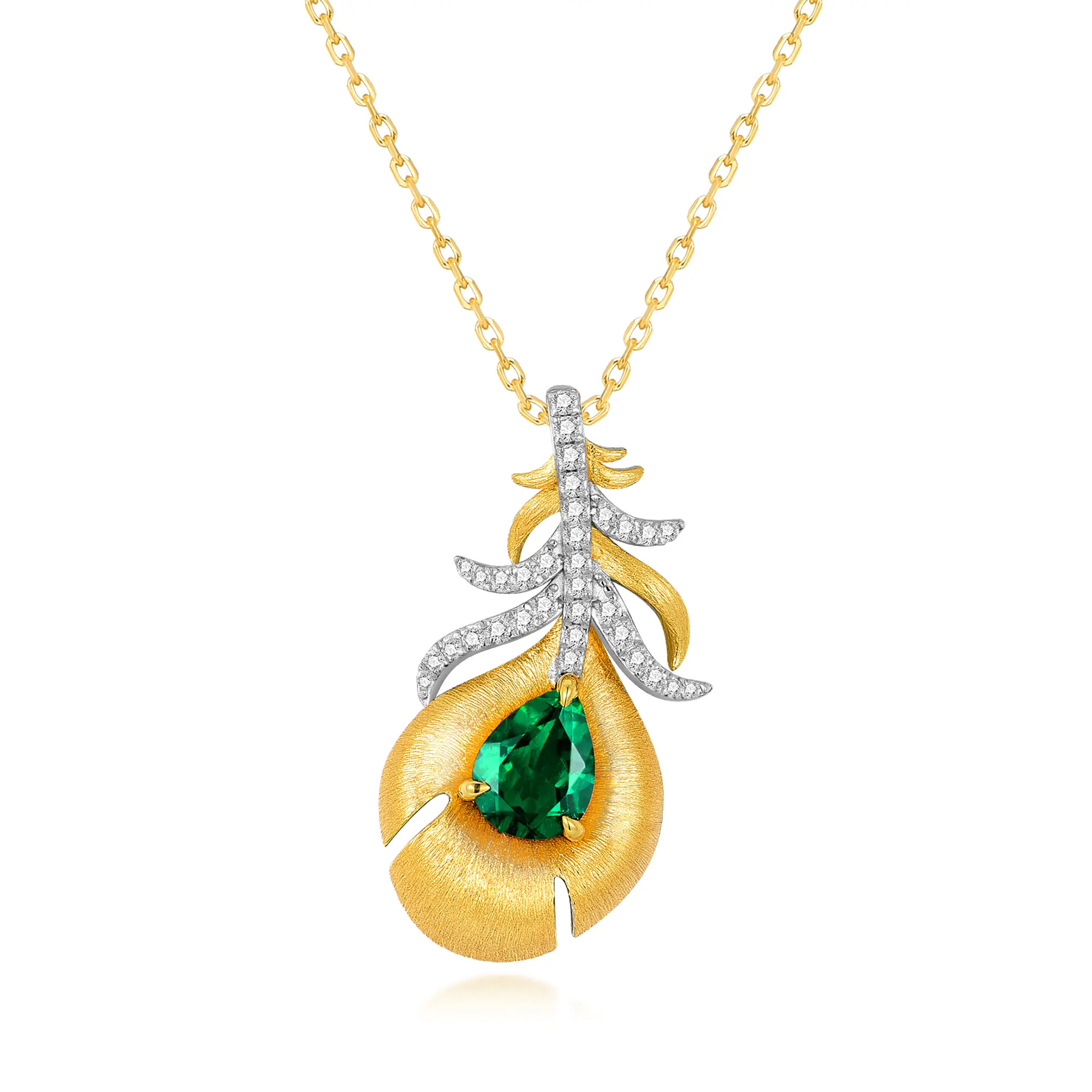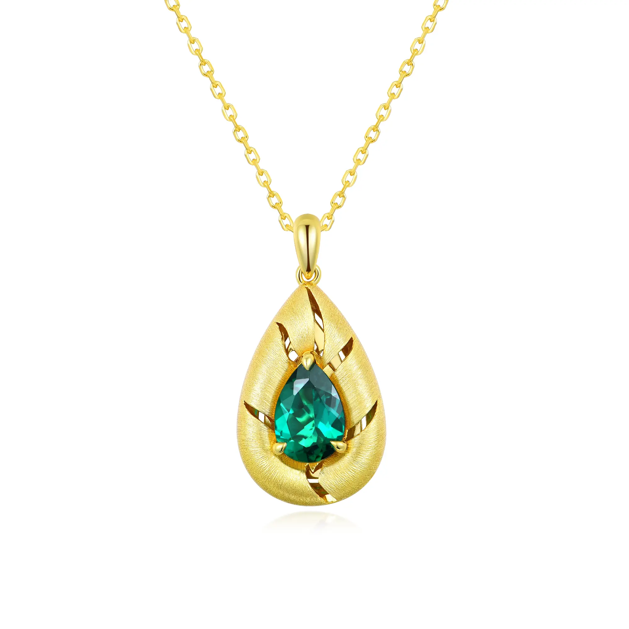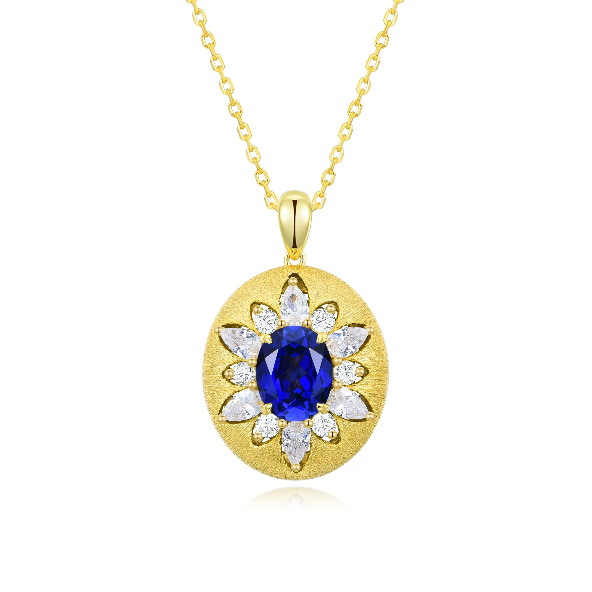 Gold Pendant Teardrop Blue Sapphire Lab Grown Corundum Stone Unique Geometric Design Timeless Luxury Style s925 Silver Necklace Jewelry for Women Lady Love Hot Sale Gifts