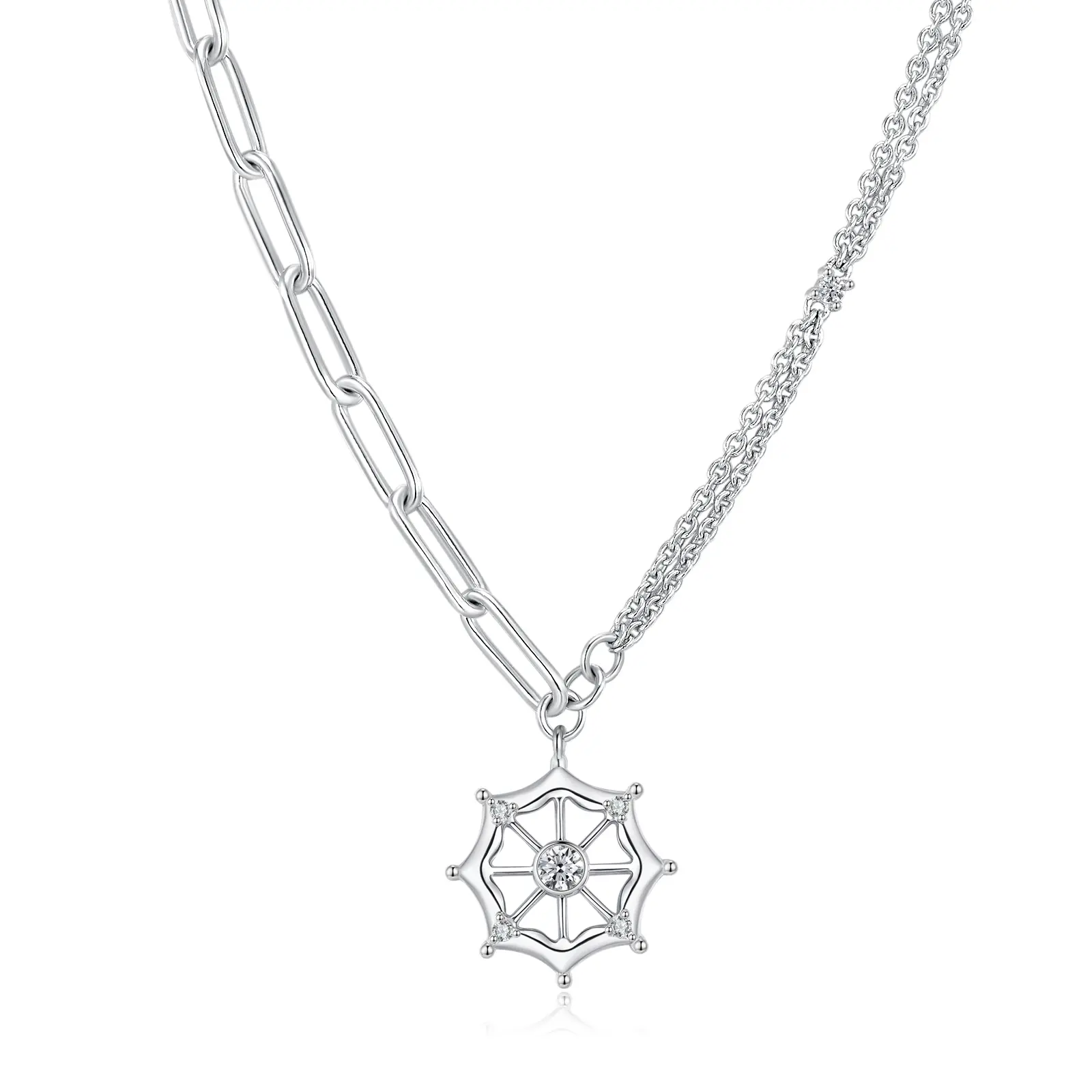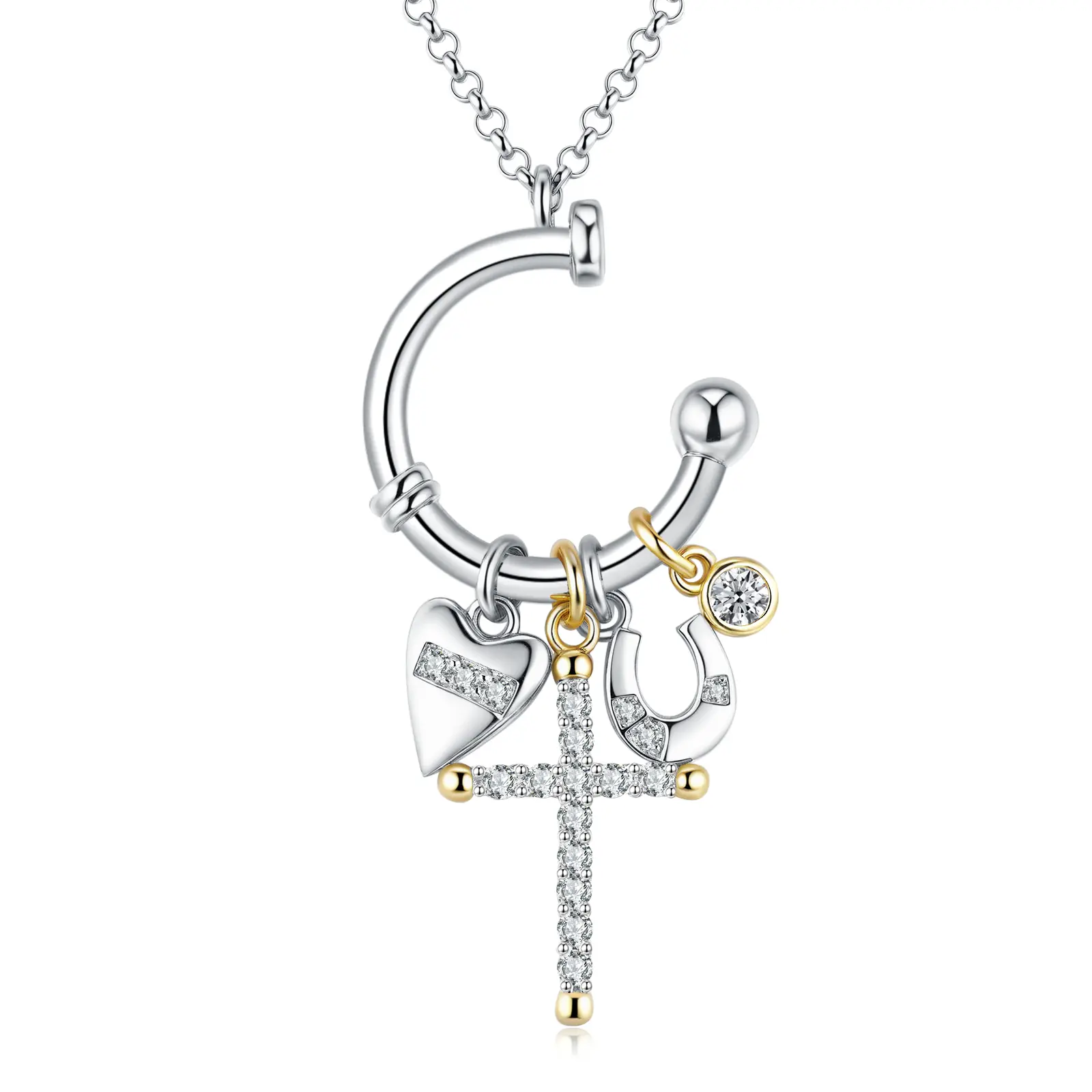 925 Sterling Silver Personalized Double Wheel Pendant Cross O Chain Necklace Jewelry for Women Men Customized Daily Jewellery