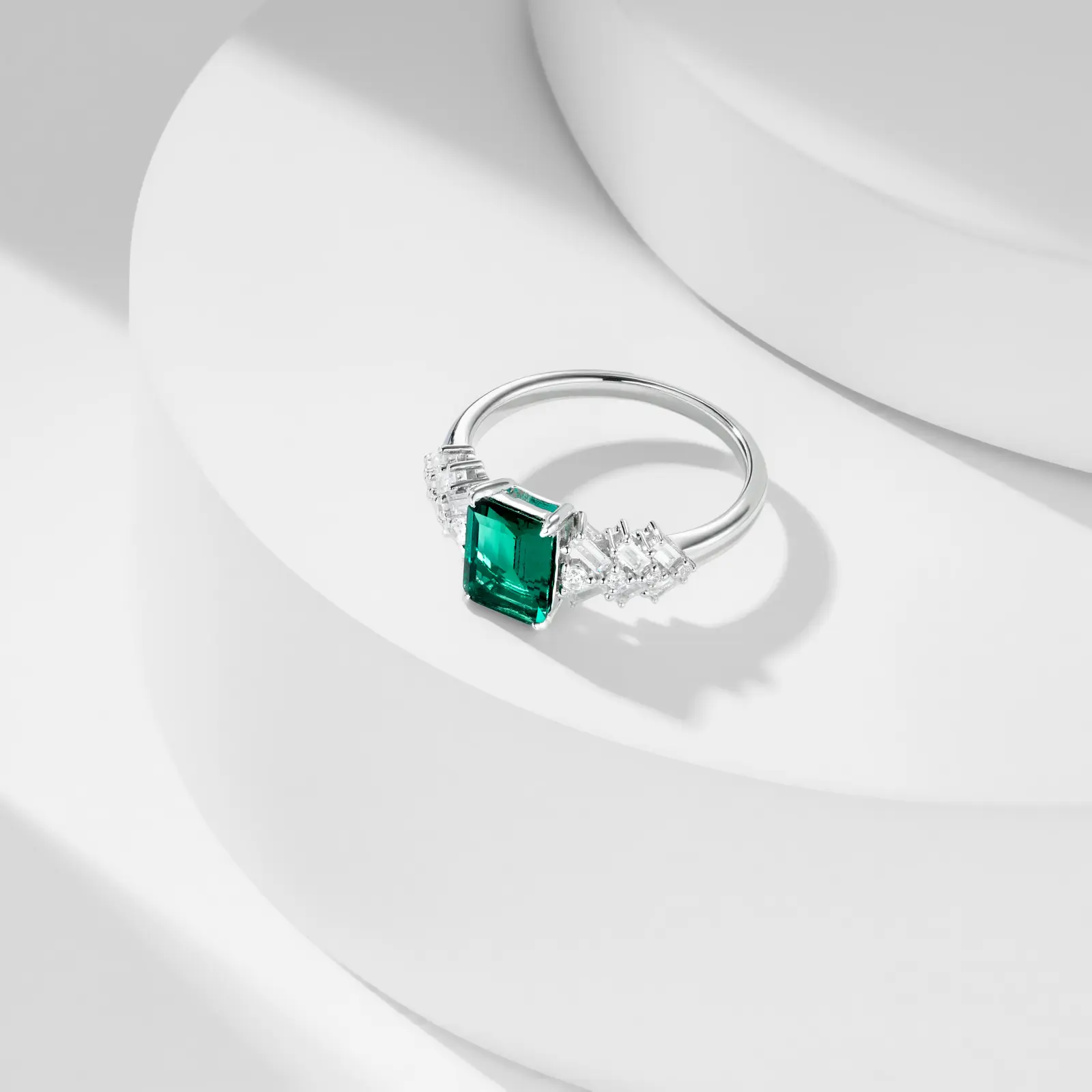 Home / Products / Rings / Factory Wholesale Price 925 Sterling Silver Vintage Rings Lab Grown Zambia Emerald Diamond Finger Ring for Lady Wedding Party Casual Hot Sale Jewelry