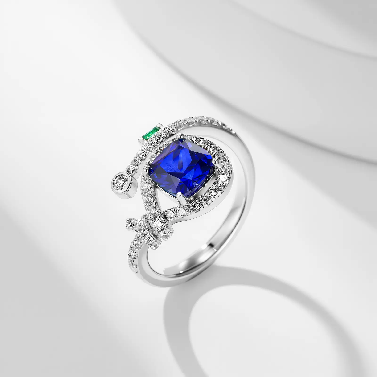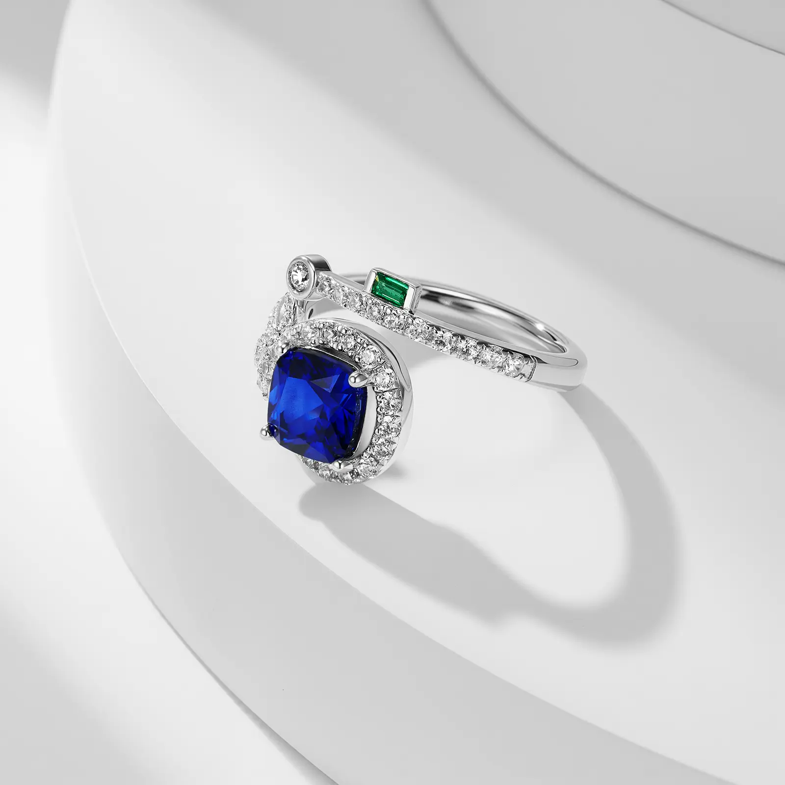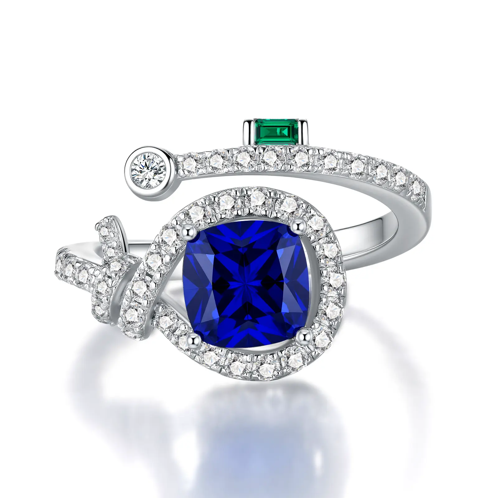 Irregular Adjustable Real Solid Silver Lab Simulated Natural Blue Cushion Sapphire Wedding Finger Rings Unisex Couple Valentine’s Day Gift Fine Jewelry Supplier