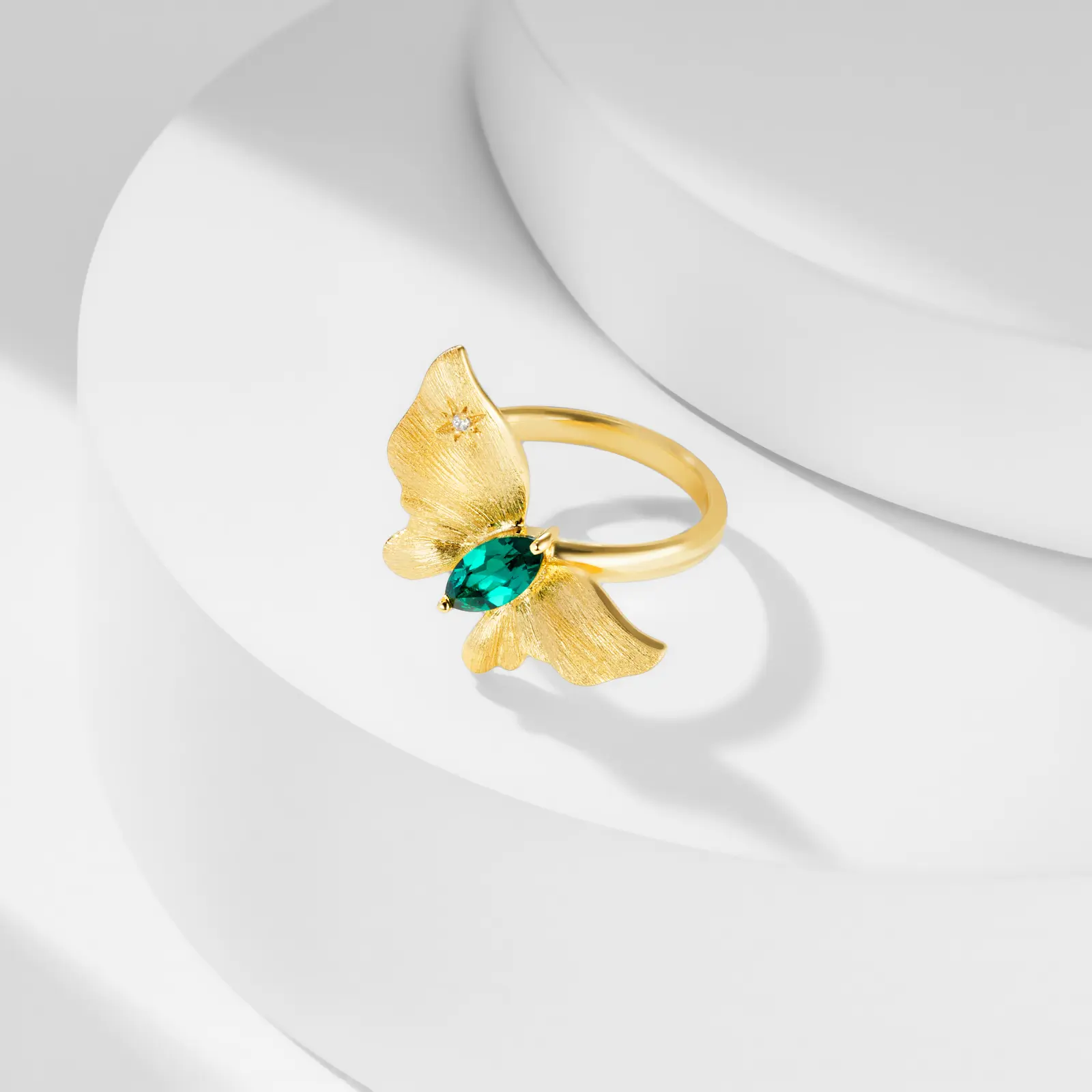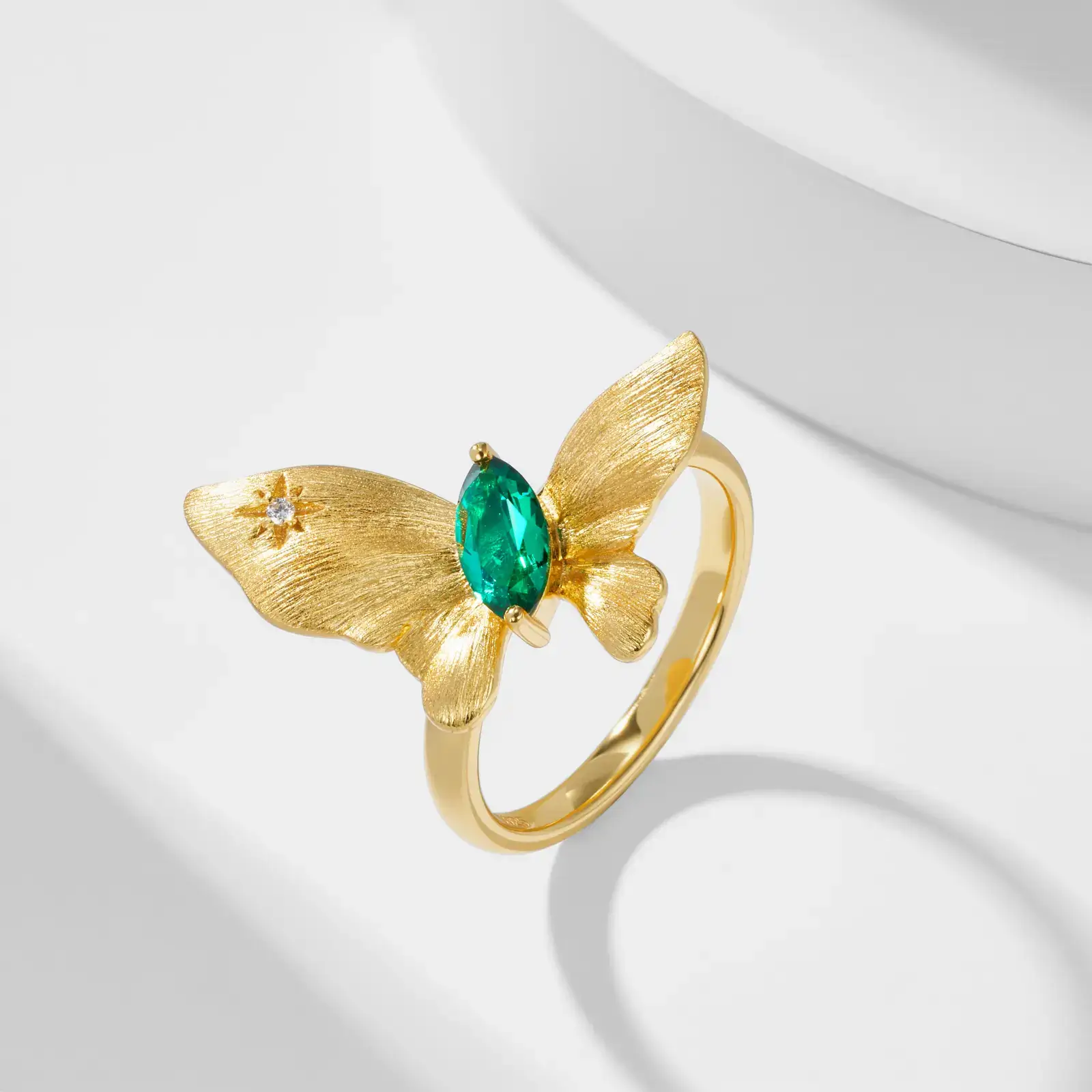 Jewelry Factory Lab Grown Emerald Butterfly Latest Gold Ring Design 925 Sterling Silver Statement Rings for Women Custom Stunning Jewelry