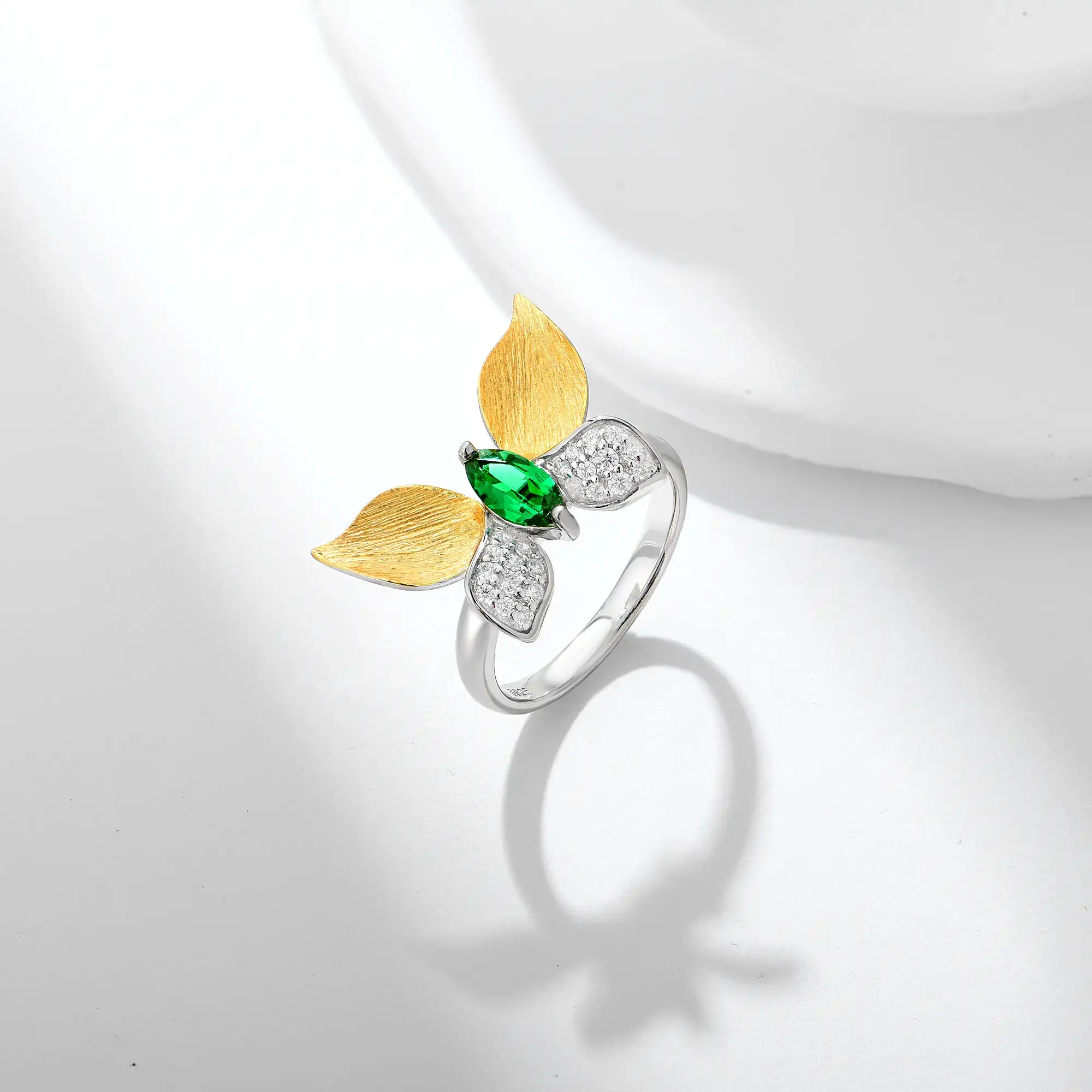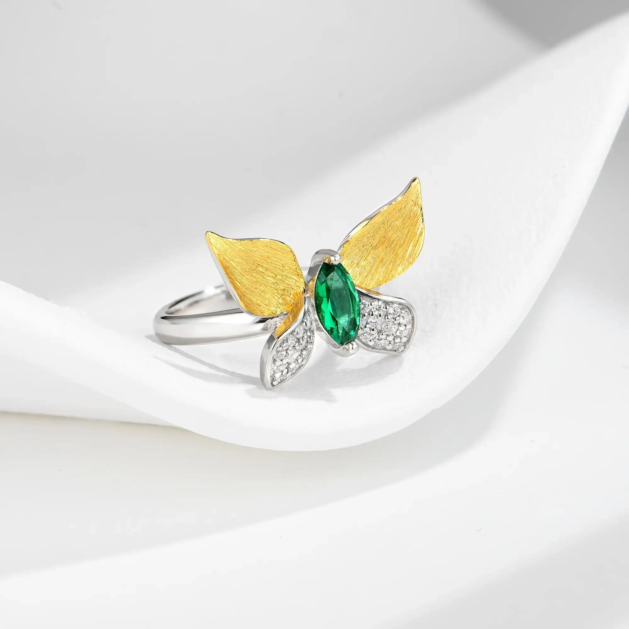 New 925 Sterling Silver Sparkling Lab Grown Emerald Butterfly Ring CZ Crystal Love Knot Infinity Finger Rings for Girls Women Fashionable Non Fading Jewelry